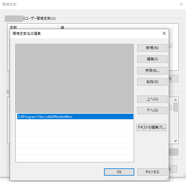 インストール後は環境変数を設定しておく。windowsの場合は、以下の通り。
